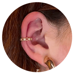 Perforación algo más hacia el borde, pensada sobre todo para llevar un aro que rodea la oreja desde fuera.