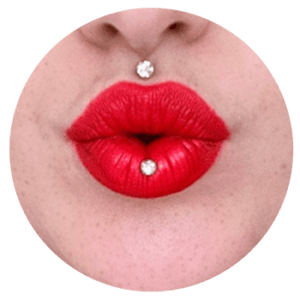 Perforación en un lado del labio superior, imitando los lunares icónicos. Se lleva con stud discreto.