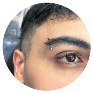 Perforación normalmente en diagonal sobre la ceja. Suele llevar barra curva con dos bolitas o formas pequeñas. Muy visible y con carácter.