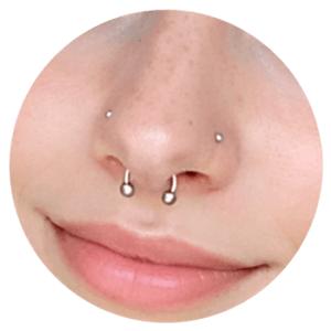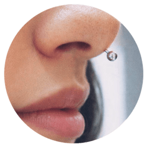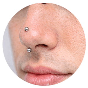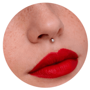 El clásico piercing en un lado de la nariz. Se puede llevar con un stud discreto o con un aro fino. Muy visible y fácil de combinar con otros.