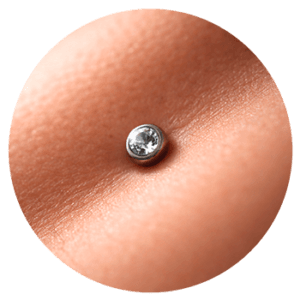 Perforación de una sola pieza que se fija bajo la piel mediante un anclaje. Solo queda visible la parte superior de la joya. Puede colocarse en casi cualquier zona del cuerpo con superficie suficiente.